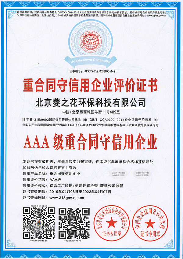 重合同守信用企業評價證書