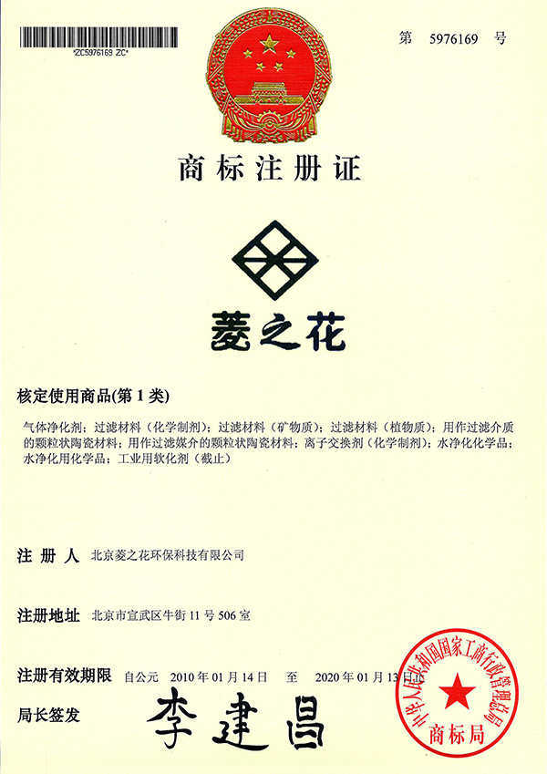 菱之花商標注冊證